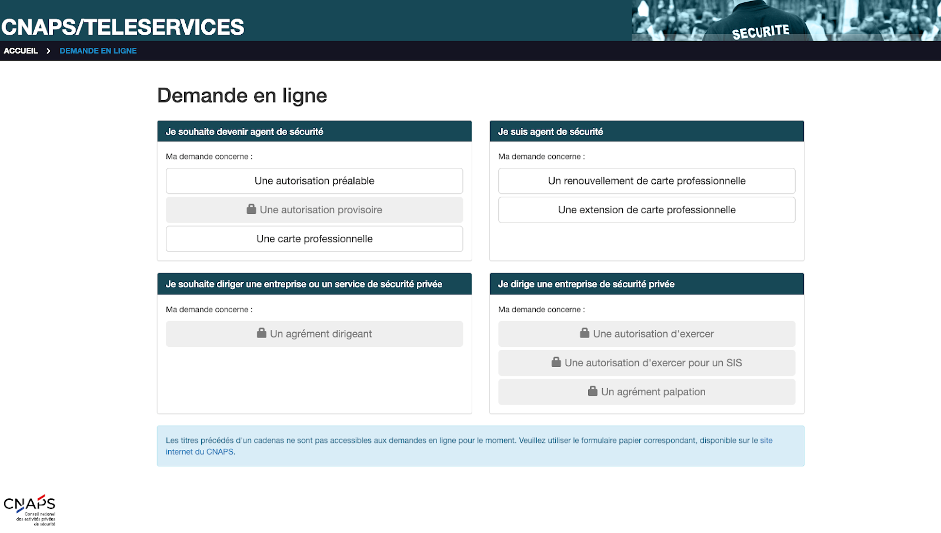 1. Demande via le téléservice du CNAPS.