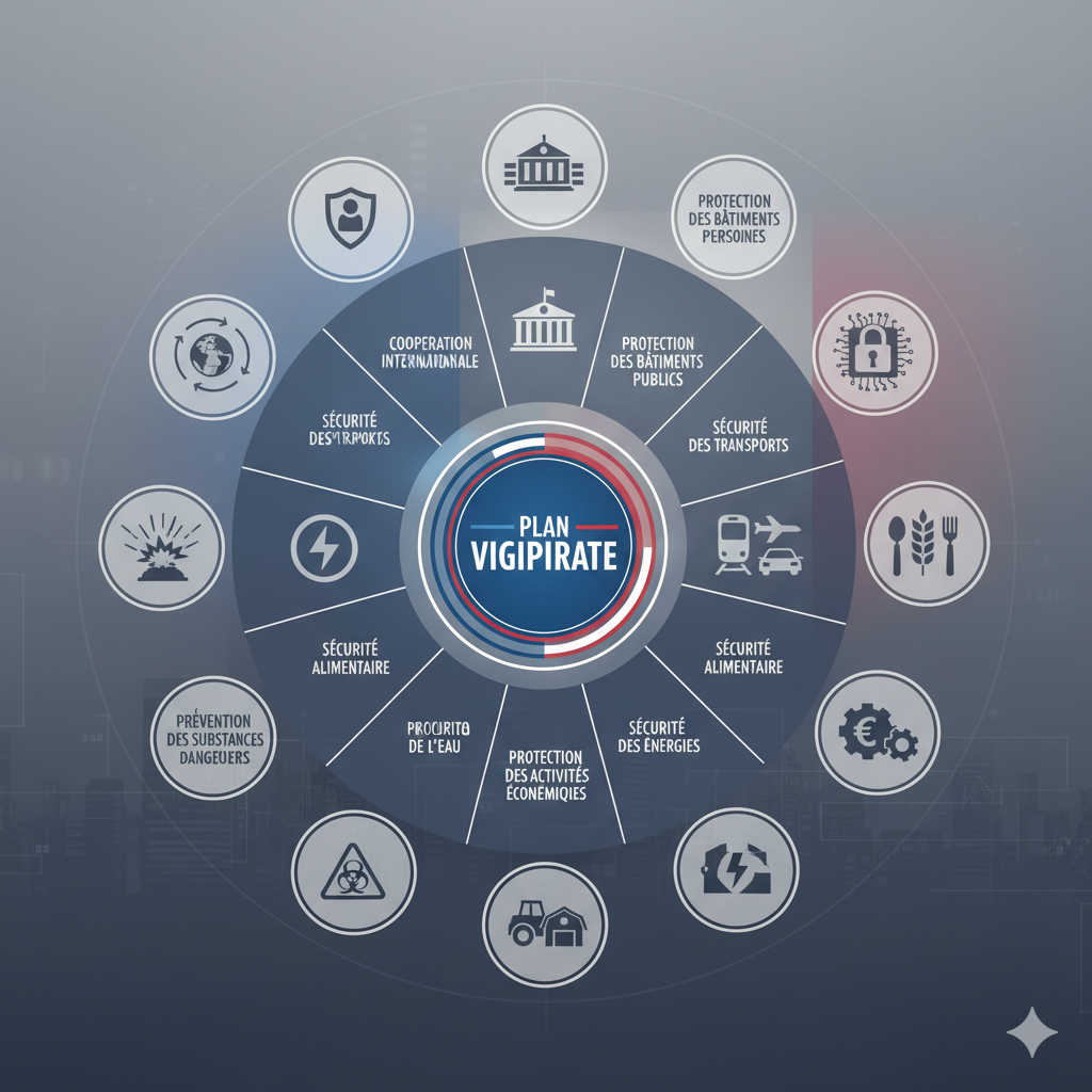 Il s’agit d’un dispositif permanent qui s’applique en France et à l’étranger, et à tous les grands domaines d’activité de la société (les transports, la santé, l’alimentation, les réseaux d’énergie, la sécurité des systèmes d’information…). Il vise à associer tous les acteurs de la nation susceptibles de contribuer à la vigilance, à la prévention et à la protection contre la menace terroriste : l’État, les collectivités territoriales, les opérateurs, les citoyens.