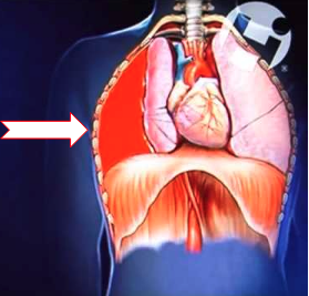 Le sang prend place entre la cage thoracique et le poumon. Cela entraine une compression du poumon.